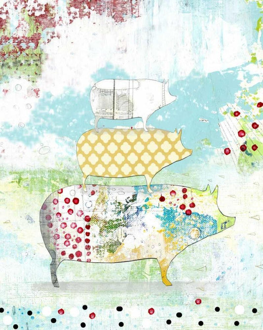 Totem Pigs White Modern Wood Framed Art Print with Double Matting by Ogren, Sarah