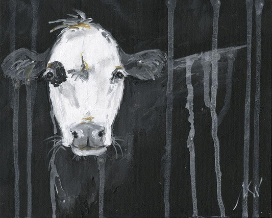 Cow White Modern Wood Framed Art Print with Double Matting by Strong, Molly Susan
