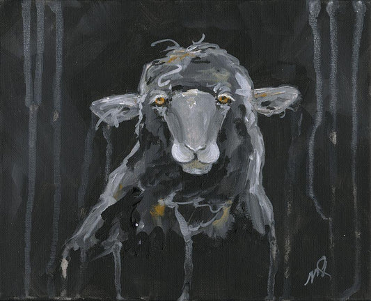 Sheep White Modern Wood Framed Art Print with Double Matting by Strong, Molly Susan