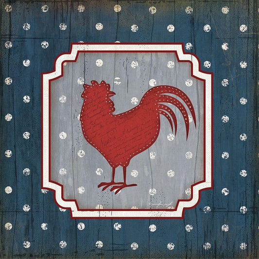 Red White and Blue Rooster I White Modern Wood Framed Art Print with Double Matting by Pugh, Jennifer