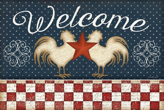 Red White and Blue Rooster X White Modern Wood Framed Art Print with Double Matting by Pugh, Jennifer