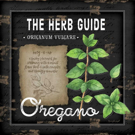 Herb Guide Oregano White Modern Wood Framed Art Print with Double Matting by Pugh, Jennifer