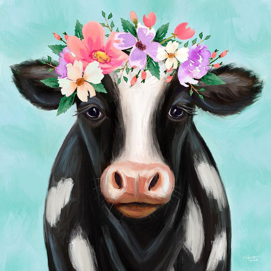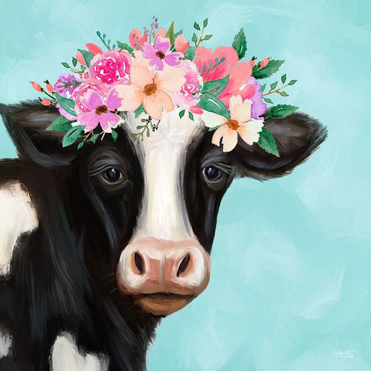 Blue Cow White Modern Wood Framed Art Print with Double Matting by Tyndall, Elizabeth