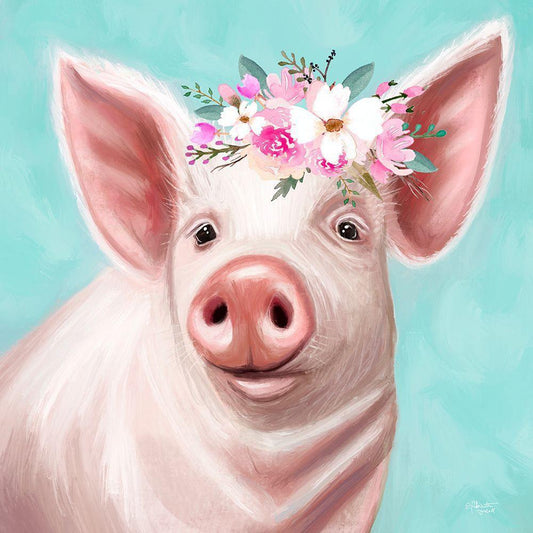 Blue Pig White Modern Wood Framed Art Print with Double Matting by Tyndall, Elizabeth
