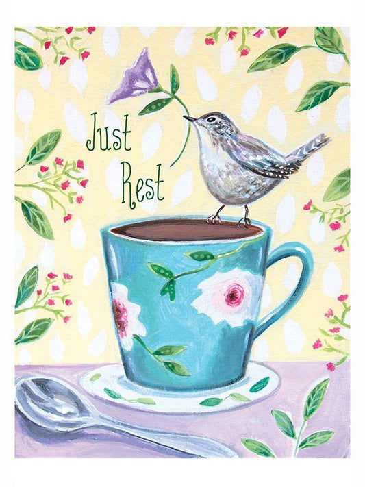 Rest Bird White Modern Wood Framed Art Print with Double Matting by Tyndall, Elizabeth