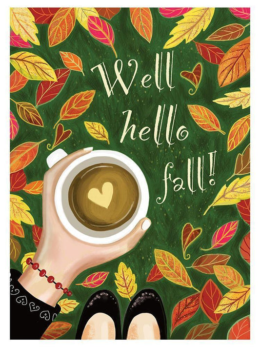 Well, Hello Fall White Modern Wood Framed Art Print with Double Matting by Tyndall, Elizabeth
