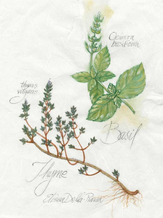 Basil and Thyme White Modern Wood Framed Art Print with Double Matting by Della-Piana, Elissa