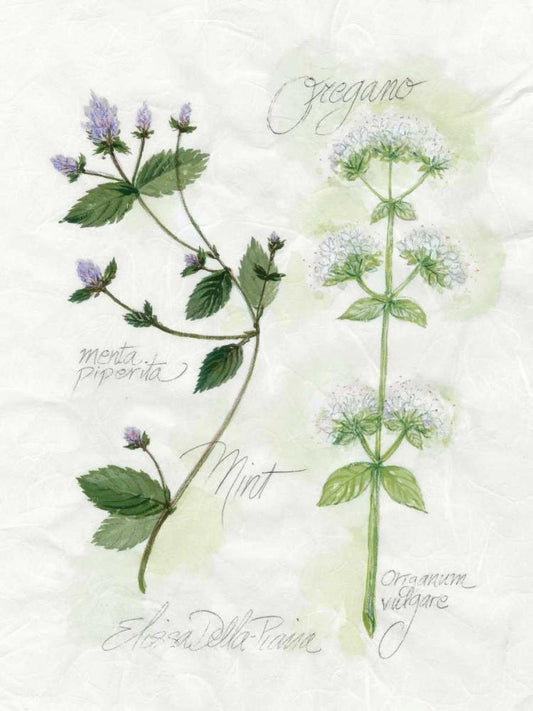 Oregano and Mint White Modern Wood Framed Art Print with Double Matting by Della-Piana, Elissa