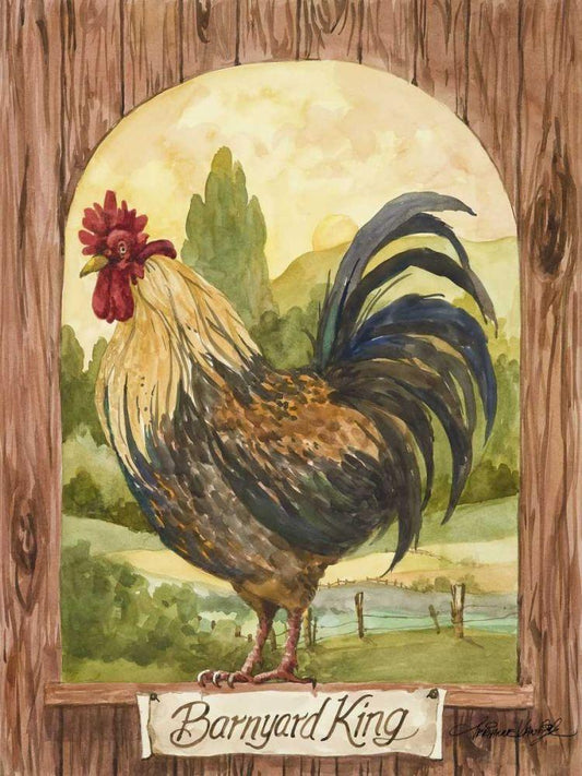 Barnyard King White Modern Wood Framed Art Print with Double Matting by Van Dijk, Jerianne