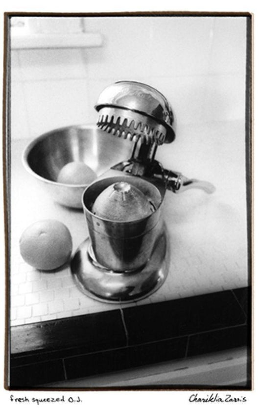 Fresh Squeezed OJ White Modern Wood Framed Art Print with Double Matting by Zarris, Chariklia