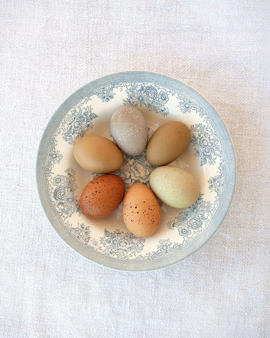 Eggs on Linen White Modern Wood Framed Art Print with Double Matting by Soderman, Tania