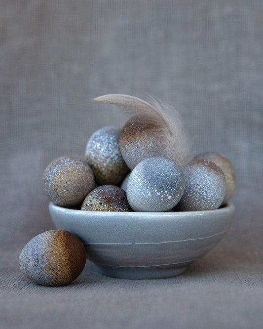 Quail Eggs on Blue Plate White Modern Wood Framed Art Print with Double Matting by Soderman, Tania
