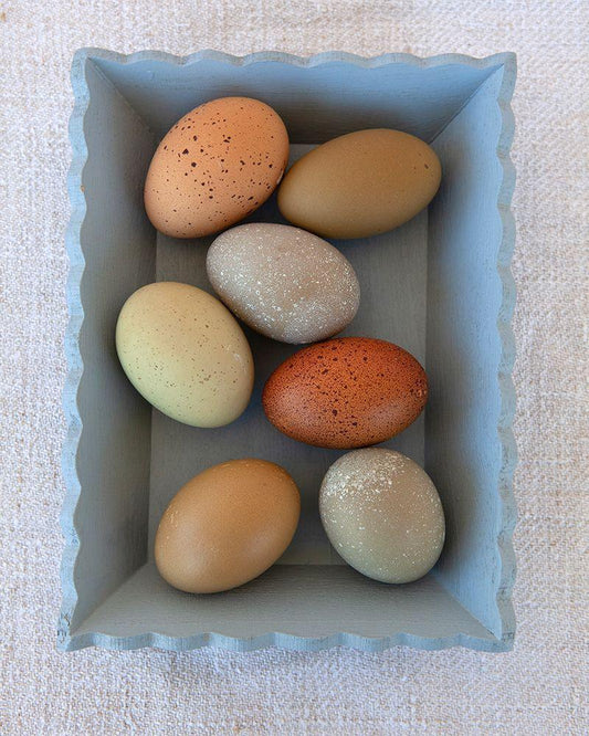 Rainbow Eggs in Blue Box White Modern Wood Framed Art Print with Double Matting by Soderman, Tania