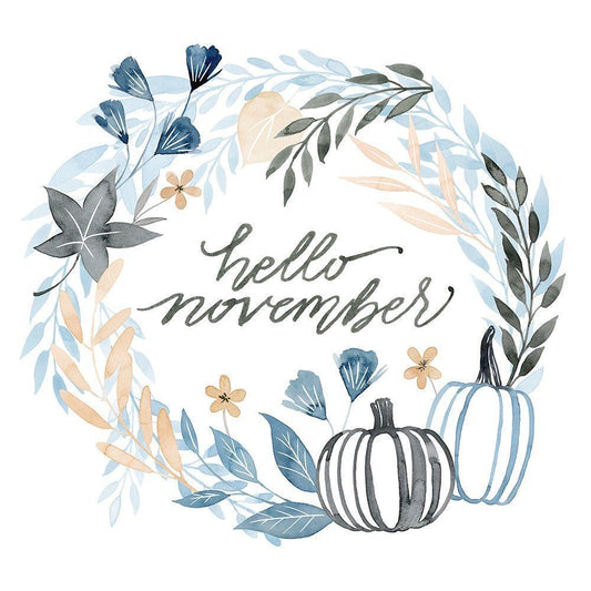 Harvest Blue Pumpkin II White Modern Wood Framed Art Print with Double Matting by Parker, Jennifer Paxton