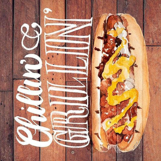 Chillin and Grillin I White Modern Wood Framed Art Print with Double Matting by Parker, Jennifer Paxton