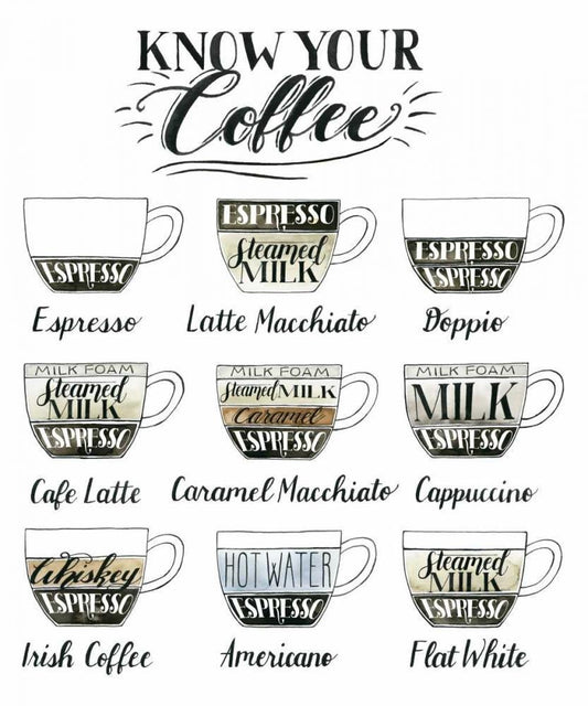 Coffee Chart White Modern Wood Framed Art Print with Double Matting by Popp, Grace