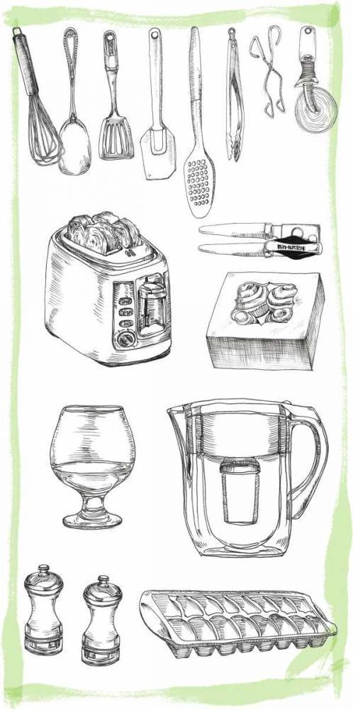 Food Sketches II White Modern Wood Framed Art Print with Double Matting by Wang, Melissa
