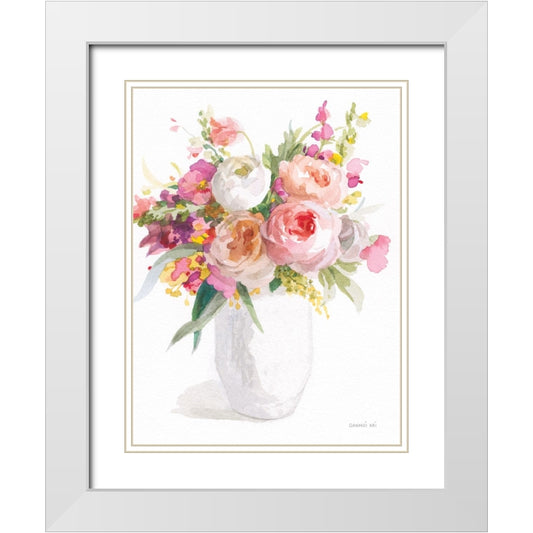 Country Bouquet I White Modern Wood Framed Art Print with Double Matting by Nai, Danhui