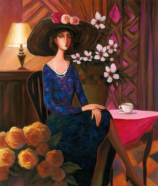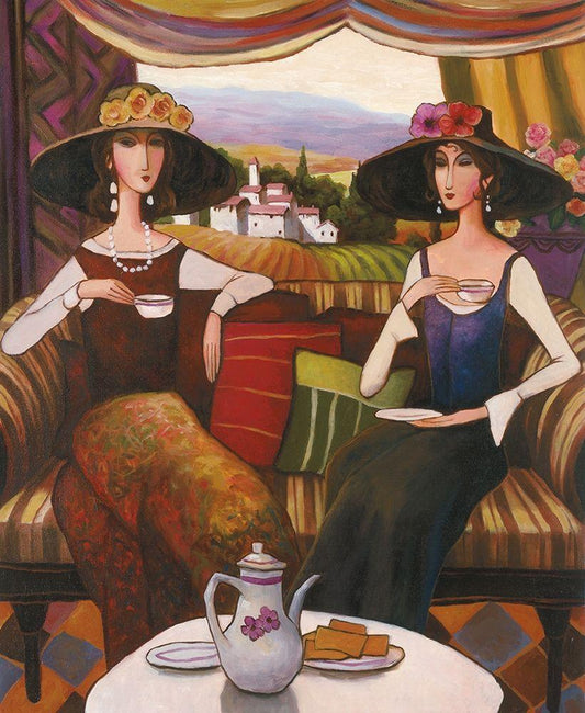 Tea Time Left White Modern Wood Framed Art Print with Double Matting by Unknown