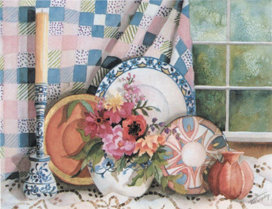 Plates by the Window White Modern Wood Framed Art Print with Double Matting by Unknown