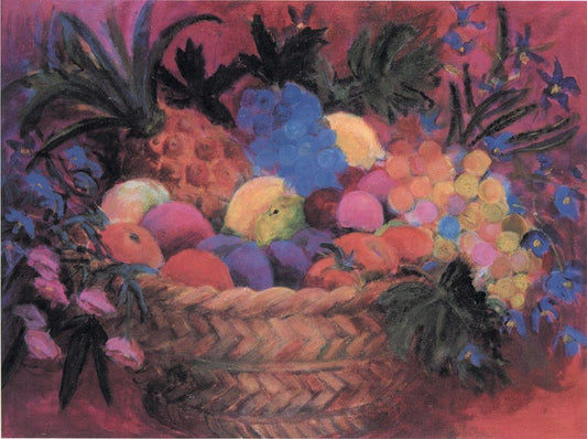 Basket of Fruit White Modern Wood Framed Art Print with Double Matting by Unknown