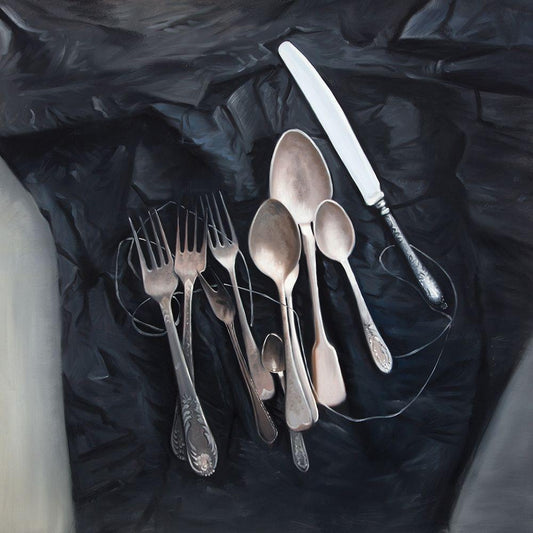 VINTAGE CUTLERY White Modern Wood Framed Art Print with Double Matting by Atelier B Art Studio