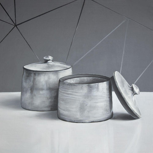 OLD POT WITH LID White Modern Wood Framed Art Print with Double Matting by Atelier B Art Studio