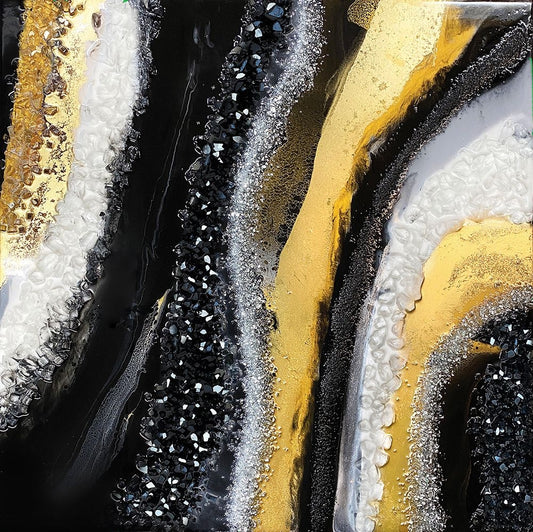 Black and Gold Agate White Modern Wood Framed Art Print with Double Matting by Storms, Alyson