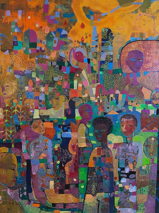 Human Tapestry Oil Paint On Panel 2022 White Modern Wood Framed Art Print with Double Matting by Loebelsohn, Alise