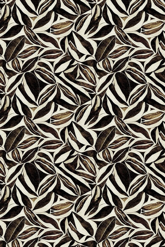 Brown Leafs Pattern White Modern Wood Framed Art Print with Double Matting by Treechild