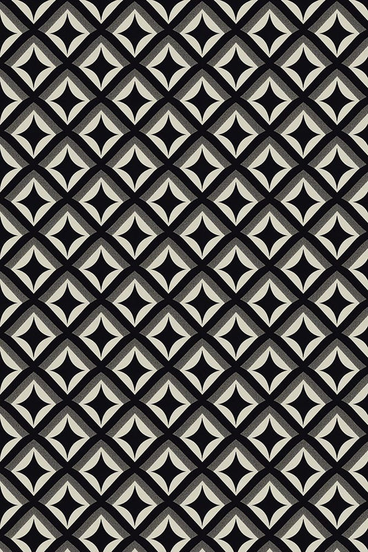 Black And White Tile Pattern White Modern Wood Framed Art Print with Double Matting by Treechild