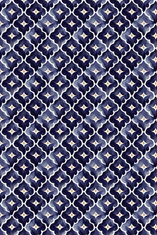 Blue Aquarell Tile Pattern White Modern Wood Framed Art Print with Double Matting by Treechild