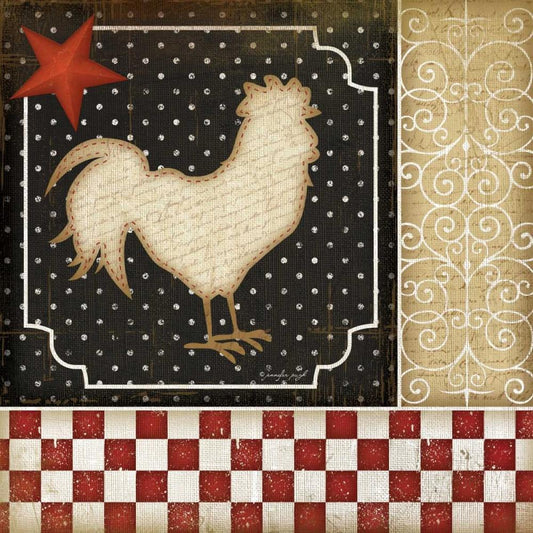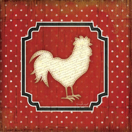 Country Kitchen Rooster I Black Ornate Wood Framed Art Print with Double Matting by Pugh, Jennifer