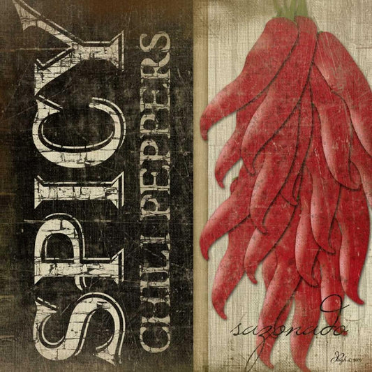 Spicy Chili Peppers Black Ornate Wood Framed Art Print with Double Matting by Pugh, Jennifer
