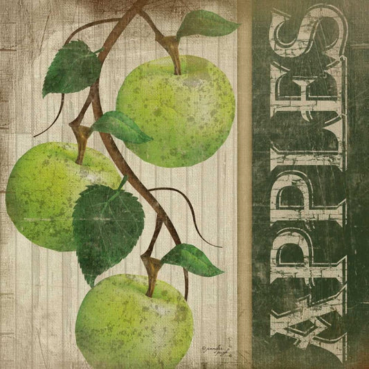 Green Apples Black Ornate Wood Framed Art Print with Double Matting by Pugh, Jennifer