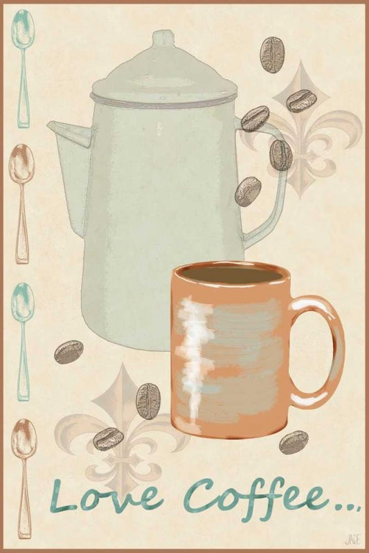 Love Coffee Black Ornate Wood Framed Art Print with Double Matting by Reynolds, Jade
