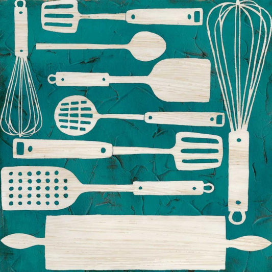 Kitchen Kitsch I Black Ornate Wood Framed Art Print with Double Matting by Vess, June Erica