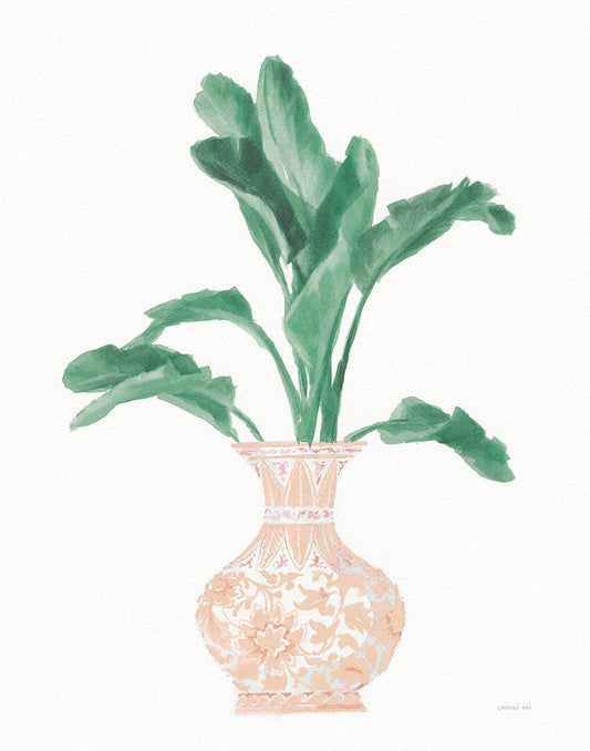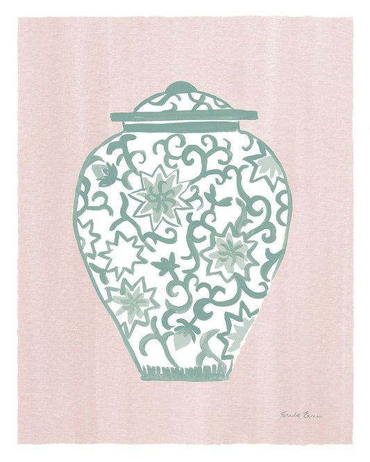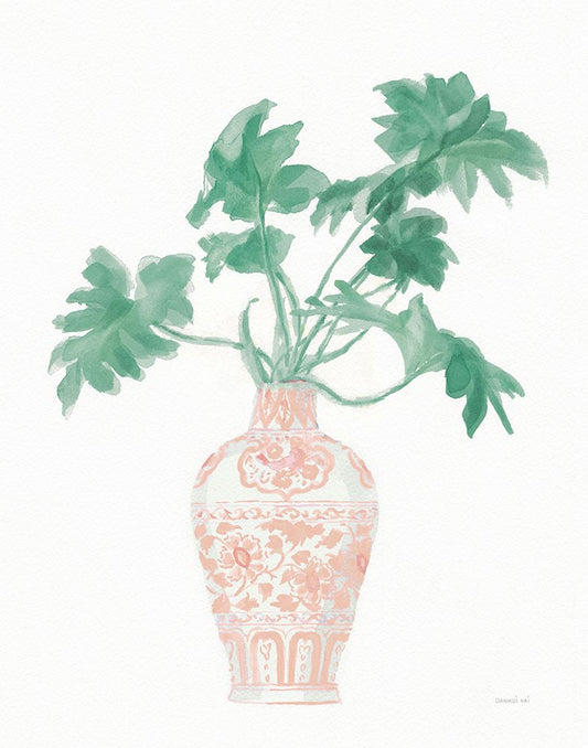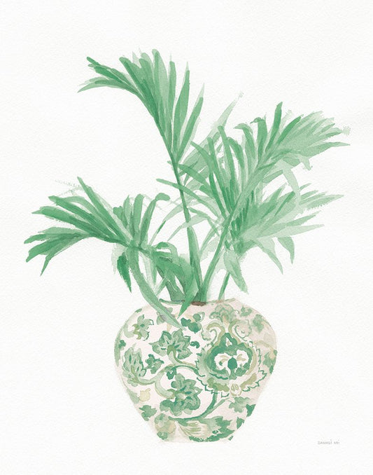 Palm Chinoiserie III Pink Green v2 Black Ornate Wood Framed Art Print with Double Matting by Nai, Danhui