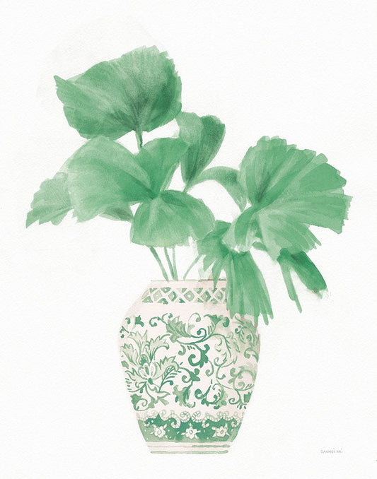 Chinoiserie III Green Watercolor Light Black Ornate Wood Framed Art Print with Double Matting by Zaman, Farida
