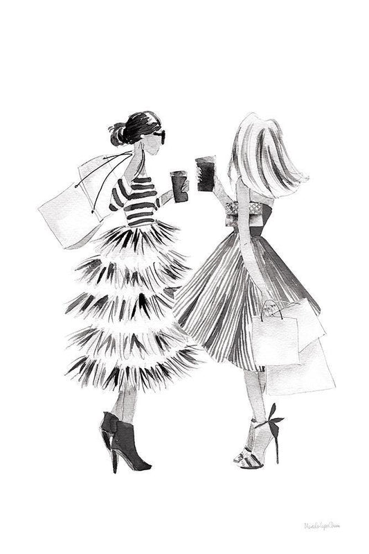 Paris Girlfriends II BW Black Ornate Wood Framed Art Print with Double Matting by Charro, Mercedes Lopez