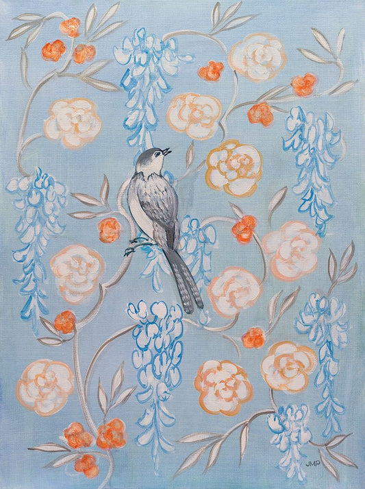 Heirloom Chinoiserie Bird I Black Ornate Wood Framed Art Print with Double Matting by Purinton, Julia