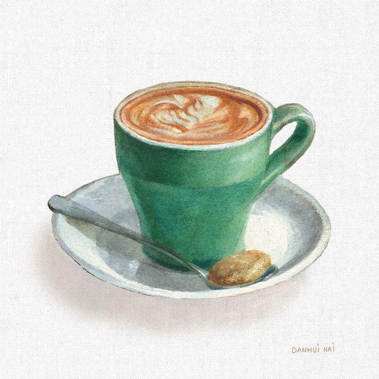Wake Me Up Coffee II Linen Black Ornate Wood Framed Art Print with Double Matting by Nai, Danhui