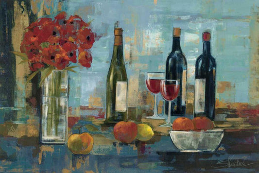 Fruit and Wine Black Ornate Wood Framed Art Print with Double Matting by Vassileva, Silvia