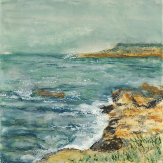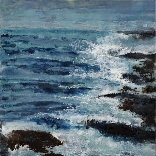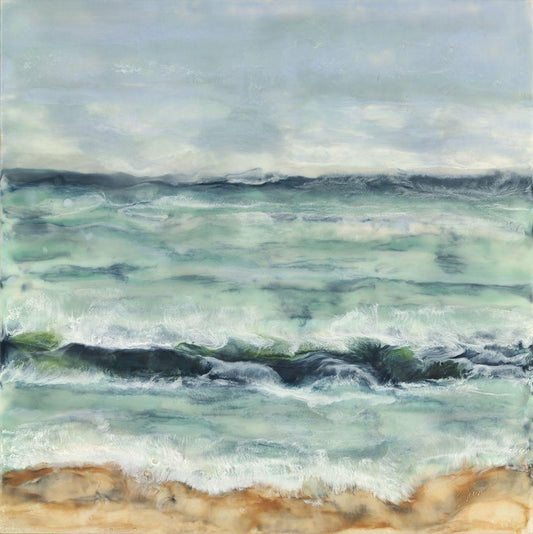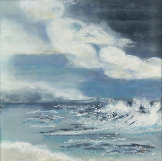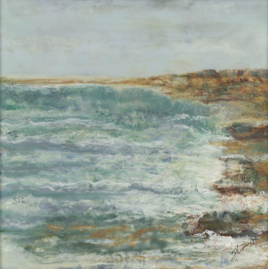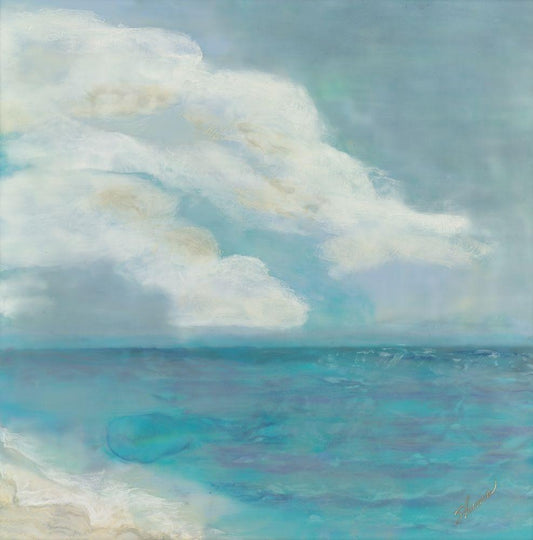 Celeste and Sea Arise White Modern Wood Framed Art Print with Double Matting by Shanti, Shima