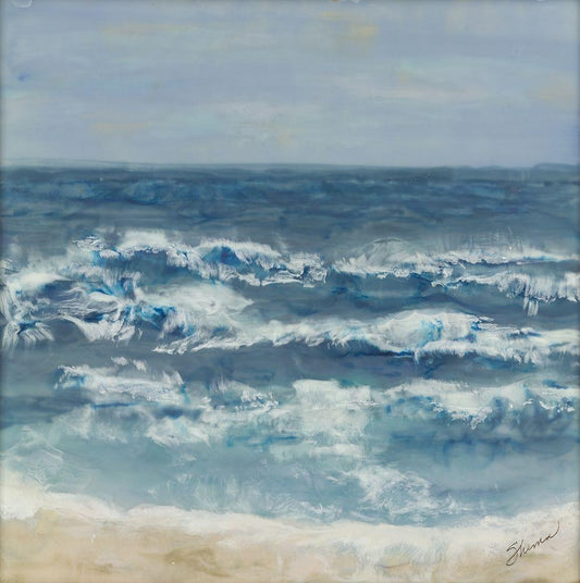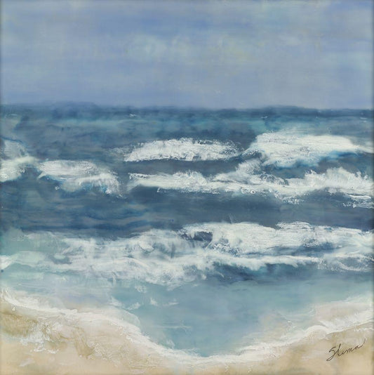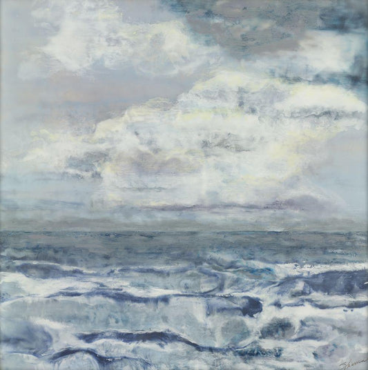 Celeste and Sea White Modern Wood Framed Art Print with Double Matting by Shanti, Shima