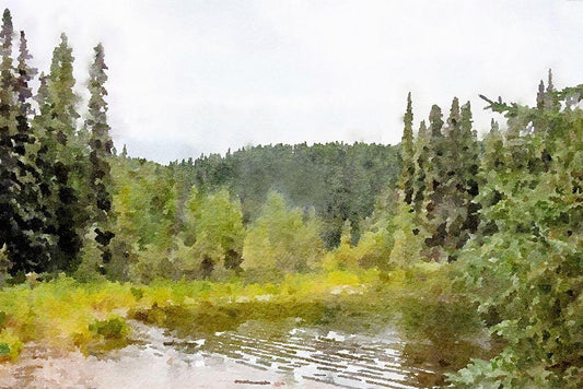 Mountain Lakeshore No. 1 White Modern Wood Framed Art Print with Double Matting by Murdock, Ramona