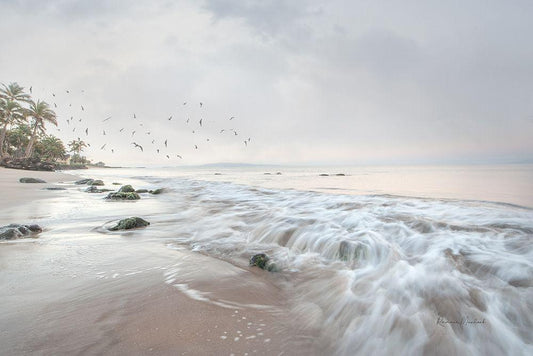 Early Morning Beach White Modern Wood Framed Art Print with Double Matting by Murdock, Ramona