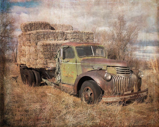 Vintage Hay Truck White Modern Wood Framed Art Print with Double Matting by Murdock, Ramona