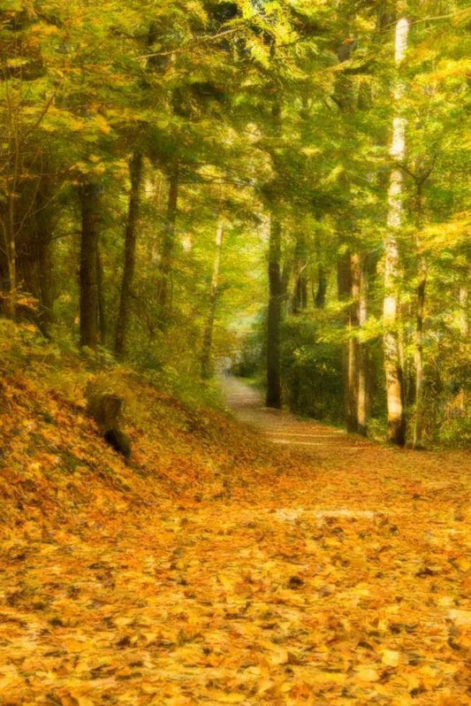 Fall Path White Modern Wood Framed Art Print with Double Matting by Murdock, Ramona