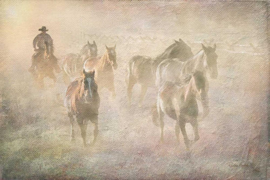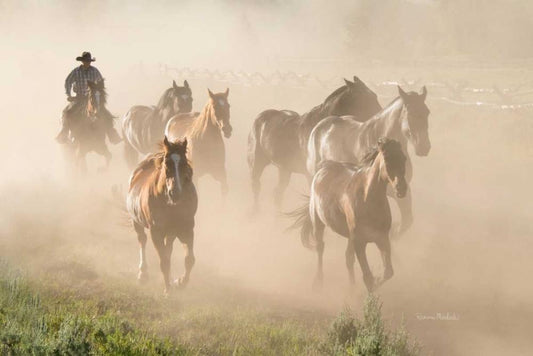 Ranch Horses White Modern Wood Framed Art Print with Double Matting by Murdock, Ramona